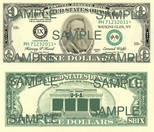 The Super Ball $9 Bill is priced the same as the Festival $8 Bill. They are $5 each, and are printed on 100% Cotton Rag Paper from Crane & Company, who makes the paper used for U.S. Currency today! Each bill comes in a museum grade vinyl currency sleeve to protect your “investment.”