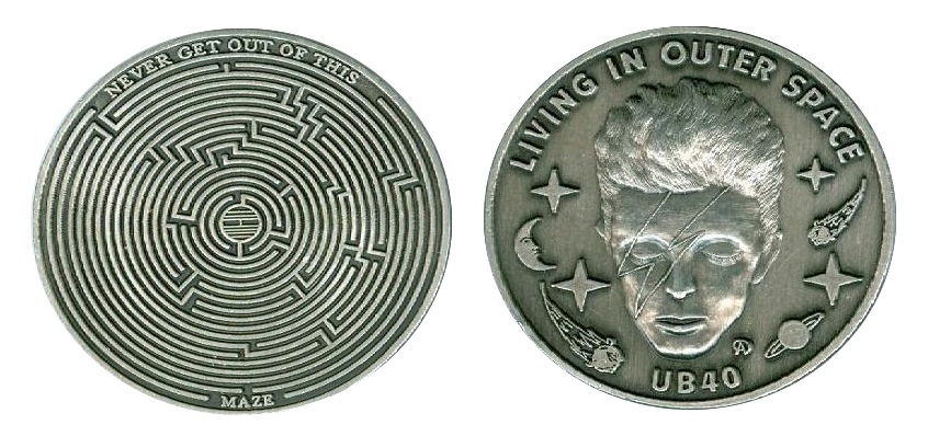 Needless to say, I have had lots of time to mull over the decisions I made with the original design, and one thing always struck me… how did I overlook the idea of a David Bowie visage from the movie Labyrinth? This inspired me to rework and redefine the Maze/Bowie Coin concept, including a totally different approach to the Maze design too. The above picture tells the whole story, I need not explain how Labyrinth and Maze tie into a common theme here. David Bowie is presented as Jareth, the evil Goblin King from Jim Henson’s last production in a brilliant career! If you missed the first two releases of the Maze/Bowie Coin, here is your chance to get your hands on one.