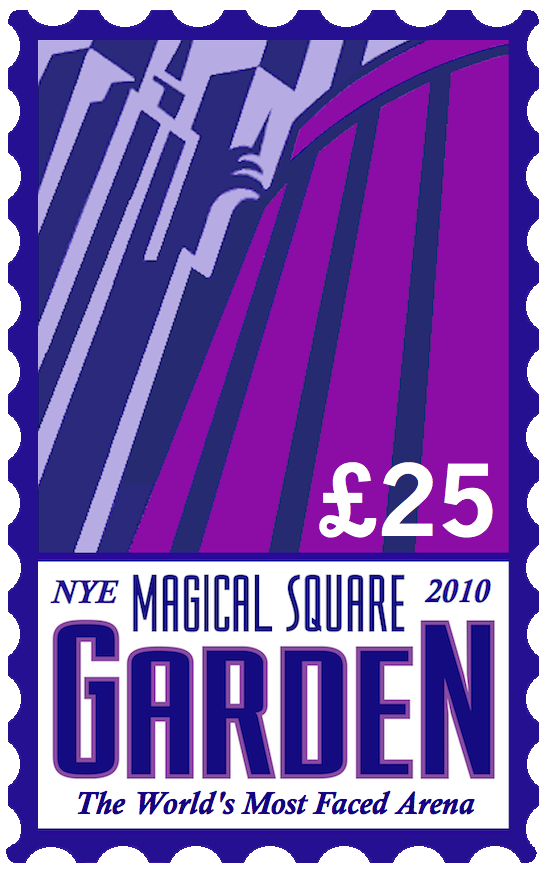 This is a re-issue and updated version of my first attempt at a sticker design… I hope you like the classy art deco flavor. It is my interpretation of a classic Madison Square Garden logo, intertwined with a nick-name I have used for many years in reference to Madison Square Garden. It is a subtle reference to a scene favorite… from the stamp shape, to the choices of the number 25 and the British Pound symbol to denominate the stamp. Consider this my contribution to the Phish Lot world of logo knock-offs…