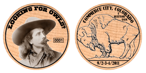 The Buffalo Bill Wooden Nickel commemorated the Colorado Run this upcoming Labor Day Weekend, while also paying homage to an elusive crowd favorite. I chose to depict Buffalo Bill as a young man with a pensive look on his face. This seemed to go perfectly with the opening line of the song “Looking for owls? The young man asked…” Buffalo Bill had strong ties to the Denver area, actually passing away there in 1917.